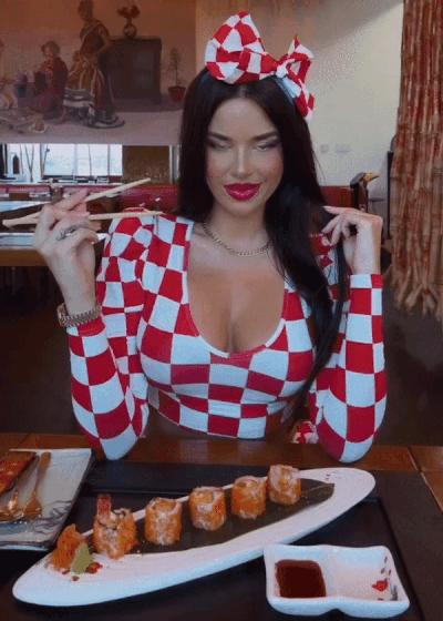 크로아티아를 응원하며 노출 패션으로 화제를 모은 여성이 일본전이 끝난 후 스시를 먹는 영상을 올려 일본을 조롱했다. (이바나 놀 인스타그램) |