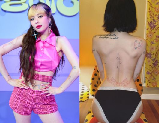[조이뉴스24 이미영 기자] 가수 던과 결별 소식을 알렸던 현아가 타투가 새겨진 뒤태 사진을 공개해 시선을 사로잡았다.