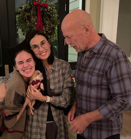 '전 부부'인 브루스 윌리스와 데미 무어의 딸 탈룰라 벨 윌리스(28)는 7일(현지시간) 자신의 SNS에 함께 크리스마스 장식이 된 자택에서 모임을 가진 사진을 공개했다. 데미 무어와 탈루라 벨 윌리스 모녀는 반려견을 안은 채 환히 웃고 있다. 브루스 윌리스 역시 이들 옆에서 온화한 미소를 짓고 있다.