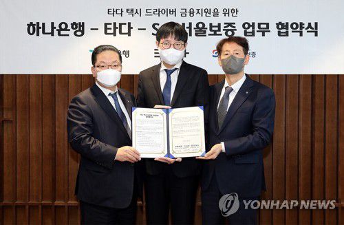 (서울=연합뉴스) 민선희 기자 = 하나은행은 모빌리티 플랫폼 '타다', SGI서울보증과 택시 기사(드라이버) 금융지원을 위한 업무협약(MOU)을 체결했다고 9일 밝혔다.