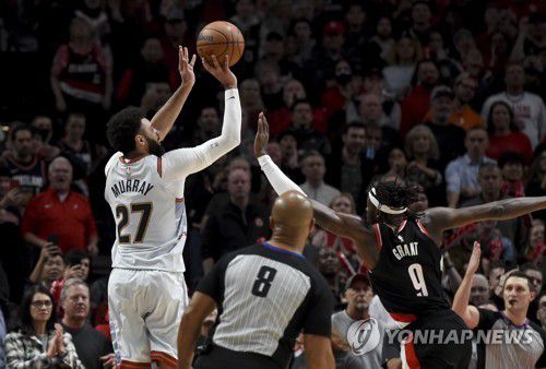 (서울=연합뉴스) 김동찬 기자 = 미국프로농구(NBA) 덴버 너기츠가 경기 종료 0.9초를 남기고 터진 저말 머리의 역전 결승 3점포로 포틀랜드 트레일블레이저스에 1점 차 짜릿한 승리를 거뒀다.