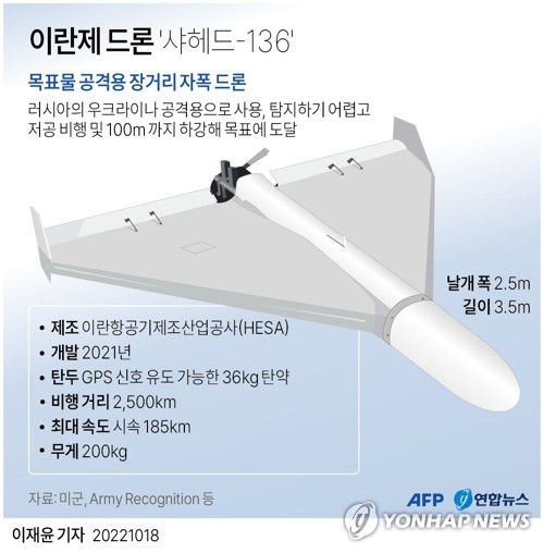 (서울=연합뉴스) 임화섭 기자 = 러시아군이 우크라이나 도시들에 대한 이란제 인명 살상용 자폭 드론(무인비행체) 공격을 3주 만에 재개했으며, 이는 러시아가 드론을 겨울에 쓸 수 있도록 개조하는 데 성공했기 때문이라는 분석이 나왔다.