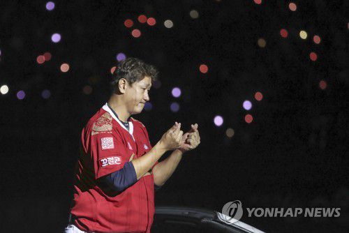 (서울=연합뉴스) 홍규빈 기자 = 눈물을 흘리며 그라운드를 떠난 이대호(40·전 롯데 자이언츠)가 9일 선수로서 마지막 공식 석상에 섰다.