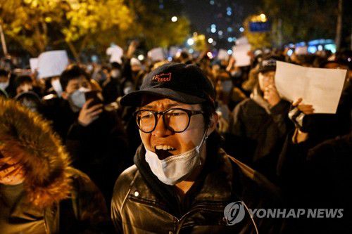 베이징 중심가에서도 주민 수백 명이 당국의 사과와 함께 제로 코로나 철회를 촉구하는 이른바 '백지 시위'를 벌였다.