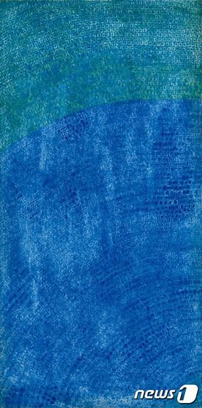 이 작품은 푸른색을 단일 색조로 사용했음에도 상단, 중앙, 하단이 각기 다른 푸른색을 띠고 있어, 푸른색의 다양한 변주와 화면 전체를 뒤덮은 균등한 색점의 번짐을 특징적으로 담아내고 있다.