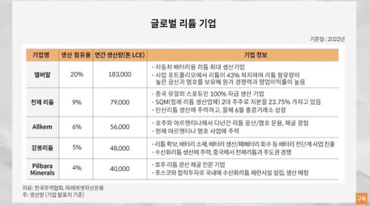 해외 2차 전지 기업으로 투자 대상을 확대할 경우, 반드시 리튬 생산 기업 투자에도 관심을 기울여야 한다는 제안도 나왔다. 김 매니저는 “앨버말 등 주요 5개 기업이 세계 리튬 생산량의 절반 가량을 차지한다”며 “2030년경이면 세계 리튬 수요의 96%를 2차 전지가 차지할 전망으로, 리튬 가격도 매우 비싼 ‘뉴노멀’ 시대가 도래할 전망이다”고 덧붙였다.