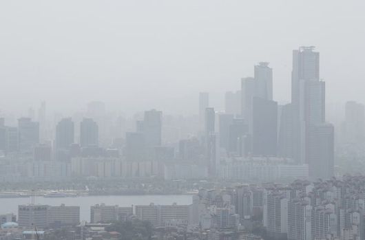 황사 유입으로 뿌옇게 보이는 서울 도심. 장진영 기자 |