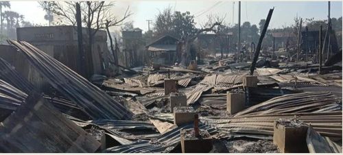 당시 저항 세력과의 교전이 벌어지지 않았음에도 미얀마군은 민간인 가옥들을 잿더미로 만들었다.