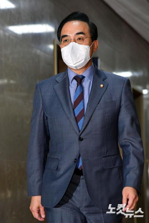더불어민주당 박홍근 원내대표가 13일 오후 서울 여의도 국회에서 예산안 관련 협의를 위해 의장실로 향하고 있다.