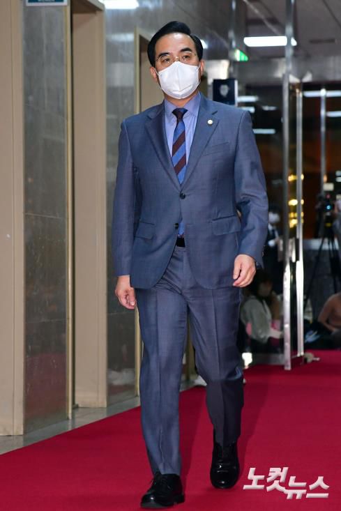 더불어민주당 박홍근 원내대표가 13일 오후 서울 여의도 국회에서 예산안 관련 협의를 위해 의장실로 향하고 있다.