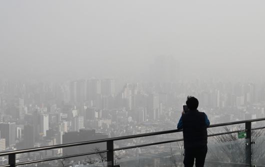 13일 서울 중구 남산에서 바라본 서울시내 일대가 미세먼지와 황사로 인해 뿌연 모습을 보이고 있다.[연합] |