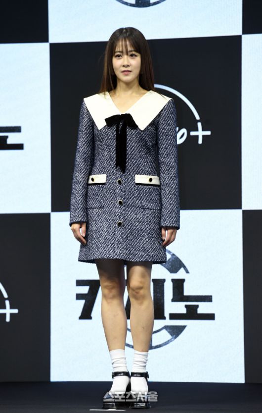 배우 류현경이 14일 서울 동대문구 JW메리어트 동대문 스퀘어호텔에서 진행된 디즈니 플러스 ‘카지노’ 제작발표회에서 취재진을 향해 포즈를 취하고 있다.