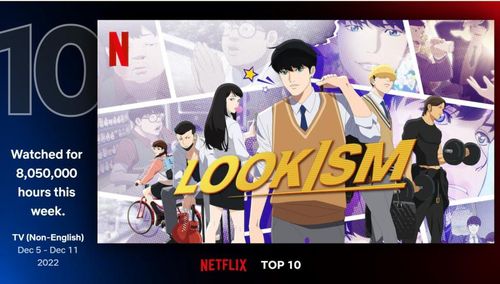 14일 넷플릭스 공식 사이트에 따르면 웹툰 원작 애니메이션 '외모지상주의'(Lookism)는 12월 둘째 주(5~11일) 시청 시간 805만 시간으로, 비영어권 TV프로그램 부문 10위에 올랐다.