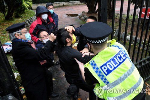 (런던=연합뉴스) 최윤정 특파원 = 영국 주재 중국 영사관 앞에서 시위하던 홍콩인을 폭행한 혐의를 받는 총영사 등 중국 외교관 6명이 수사를 받지 않고 영국을 떠났다.