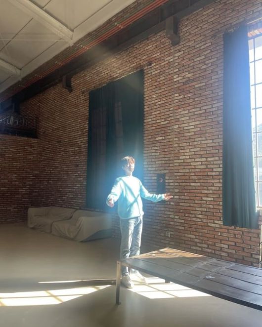 임영웅은 빛이 들어오는 창가에 서 있다. 그는 온 몸으로 빛을 받고 있다.