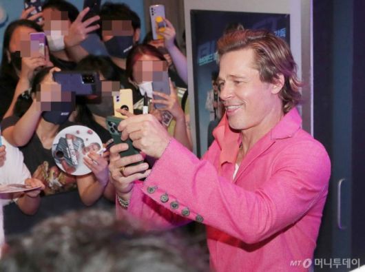 할리우드 배우 브래드 피트가 19일 오후 서울 용산구 아이파크몰 CGV에서 열린 영화 '불릿 트레인' 레드카펫 행사에서 팬들과 즐거운 시간을 보내고 있다. '불릿 트레인'은 미션을 수행하기 위해 초고속 열차에 탑승한 언럭키 가이 '레이디 버그'(브래드 피트 분)가 전 세계 고스펙 킬러들과 맞닥뜨리면서 펼쳐지는 논스톱 액션 블록버스터. '데드풀 2', '분노의 질주: 홉스&쇼', '존 윅'으로 액션 장르의 새로운 히어로로 자리 잡은 데이빗 레이치 감독이 연출을 맡았다. 2022.08.19 /사진=김창현 기자 chmt@ |