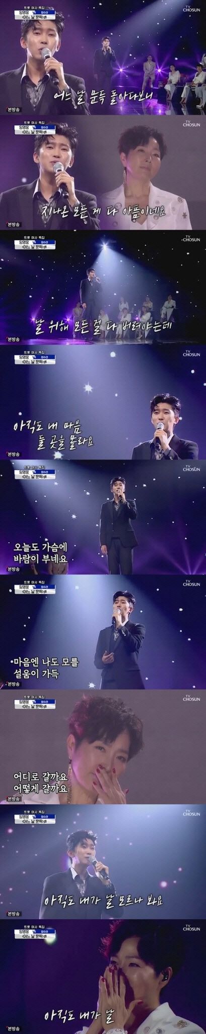 당시 임영웅은 감미로운 목소리와 빼어난 가창력으로 관객과 시청자를 사로잡았다. 이날 게스트로 출연한 ‘어느 날 문득’의 원곡 가수인 정수라는 촉촉한 눈빛으로 임영웅의 무대를 바라봤고, 깊은 감동을 나타냈다.