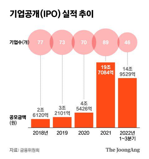 다만 해당 개선안이 IPO 시장을 침체에 빠뜨릴 수 있다는 우려도 나온다. 이미 각국 중앙은행의 기준금리 인상으로 금융시장이 위축되며 올해 들어 IPO를 철회한 기업만 현대엔지니어링, 현대오일뱅크 등 13곳이다. 이런 상황에서 금융당국의 개선안이 시행될 경우 청약 수요 감소 등으로 IPO 시장이 더 위축될 수 있다. 금융위 관계자는 “IPO 시장에 대한 열기가 다소 줄어든 현 시점에서야 말로 시장 관행을 꼼꼼히 개선할 수 있는 적기”라고 밝혔다.