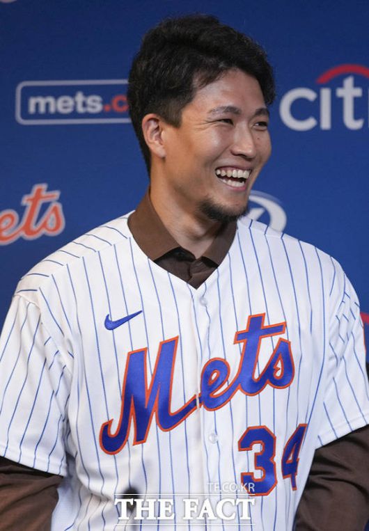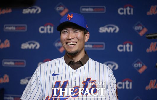 뉴욕 메츠 입단해 미소 짓는 센가 코다이. |