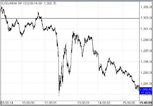 20일 서울외국환중개에 따르면 환율은 전 거래일 종가(1302.9원)대비 13.3원 하락한 1289.6원에 마감했다. 환율이 1280원대로 하락 마감한 것은 6월 29일 1283.4원 이후 처음이며, 하락폭 기준으로는 이달 9일 16.7원 내린 이후 가장 큰 낙폭이다. 이날 환율은 역외환율 하락과 달리 전일 대비 1.6원 오른 1304.5원에 시작한 뒤 1305.0원까지 올랐지만 곧 이어 하락 전환했다. 이후 BOJ의 금융 완화 조치 수정 발표에 엔화가 급등하면서 달러화가 약세폭을 확대하자 장중 1285.5원까지 하락하면서 낙폭을 10원 이상 확대했다.