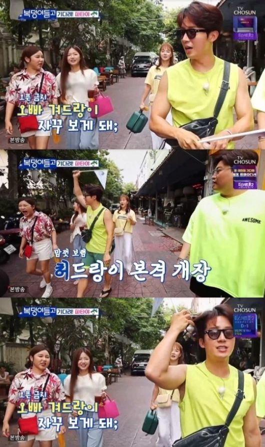 본격 섬으로 출발하며 민소매를 입은 허경환이 손을 들 때마다 송가인은 “오빠 겨드랑이 자꾸 보게 된다”고 부담스러움을 토로하며 웃음을 자아냈다.