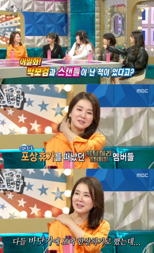 특히 김구라는 "옛날에 이일화 씨가 박보검 씨와 스캔들이 난 적 있냐"라며 물었고, 이일화는 "('응답하라 1998' 방송 이후) 저희가 포상 휴가를 받았다. 바닷가에서 모여서 한잔하자 이렇게 된 거다. 보검이랑 나랑 마주쳐서 가는 길이니까 둘이 걸어가고 있는데 사진이 찍혔다. 그 멀리까지 오신 거다"라며 당시 상황을 설명했다.
