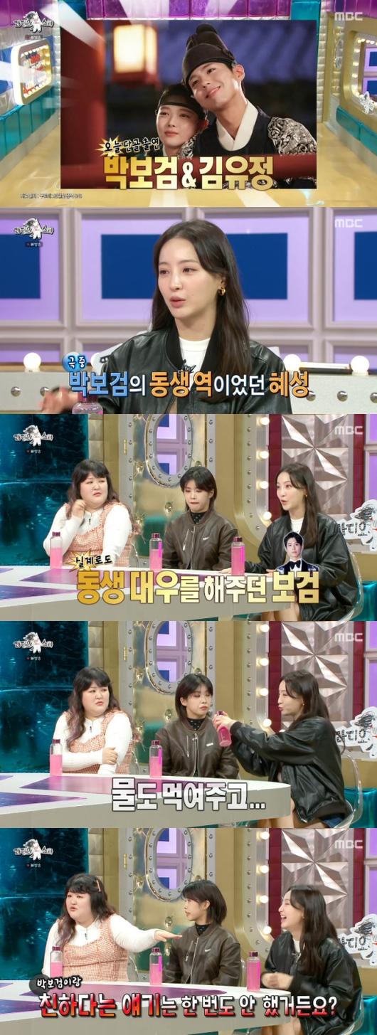 안영미는 "그 작품에서 살뜰히 챙겨준 사람이 있었다더라"라며 궁금해했고, 정혜성은 "주인공으로 나오셨던 박보검 씨와 김유정 씨가"라며 박보검과 김유정을 언급했다.