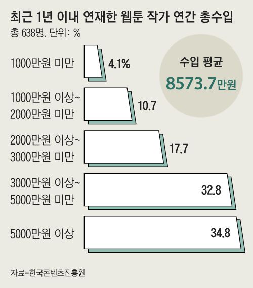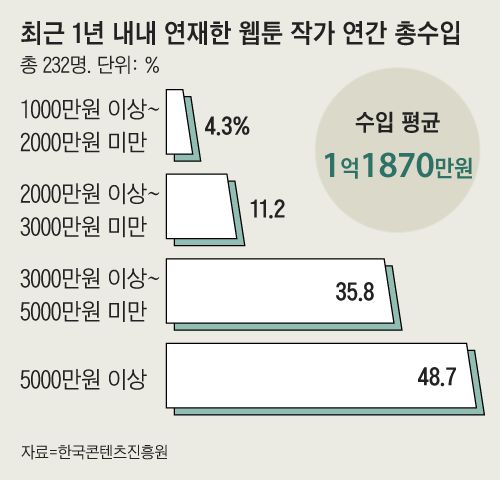 지난해 웹툰 작가 평균 수익이 1억1870만원인 것으로 조사됐다. 전년보다 3749만원 증가한 수치다.