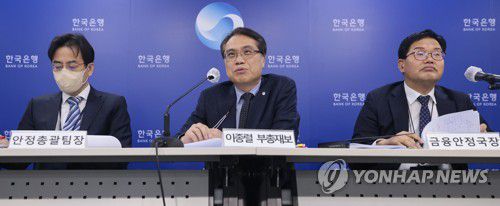 이정욱 한은 금융안정국장은 기업 대출 급증에 대해 "한전채, 은행채 등이 채권시장에서 회사채를 구축해 기업대출이 은행으로 몰리는 데다 그동안 국제 원자재가격 상승에 따라 기업들의 운전자금이 늘어나고 건설사의 경우 부채 의존도가 높아 금리가 오를 때 원리금 상환비용이 증가했기 때문"이라며 "특히 운전자금 수요 등 비용 증가에 대응하는 차원에서 대출이 증가하는 부분은 금융안정 측면서도 경계해야 할 부분"이라고 말했다.