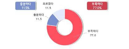 중소기업만 놓고 보면 대응 여력이 부족하다는 응답이 77.0%로 더 높았고, 여력이 충분하다는 응답과 모르겠다는 응답이 각 11.5%였다.