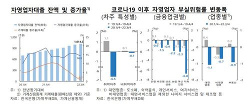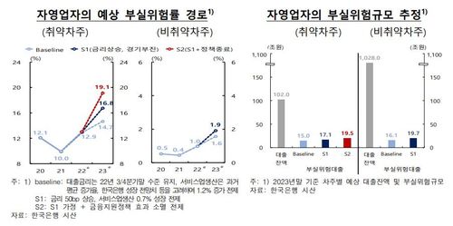 구체적으로 대출금리 상승세가 이어지고 매출 회복세가 둔화하는 가운데 금융지원정책 효과마저 소멸되면 취약차주를 중심으로 부실위험률이 크게 높아질 가능성이 있는 것으로 분석됐다.