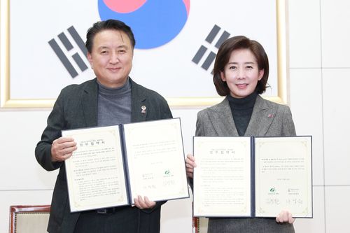 협약식에는 김영환 지사와 나경원 부위원장이 참석했다.