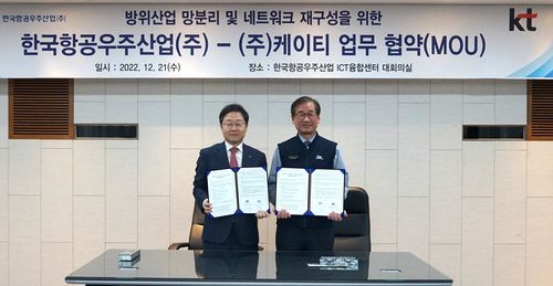 KT는 KAI의 유선·5G 자가망에 기반한 보안네트워크 설계와 ICT 재난복구체계·데이터센터 설계 등에 협력한다.