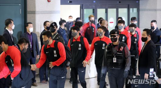 [인천공항=뉴시스] 김금보 기자 = 2022 카타르 월드컵에서 16강 진출 성적을 거둔 한국 축구대표팀이 7일 오후 인천국제공항을 통해 귀국하고 있다. 2022.12.07. kgb@newsis.com |