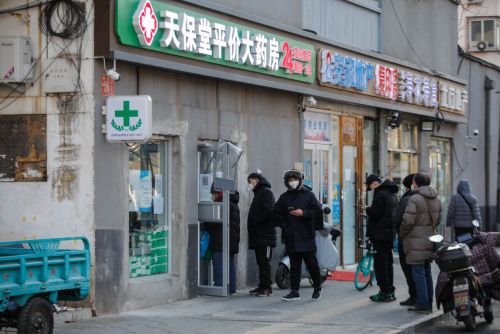 중국 베이징에 위치한 약국에 21일 사람들이 약을 사기 위해 줄 서 있다. 베이징/EPA연합뉴스 |