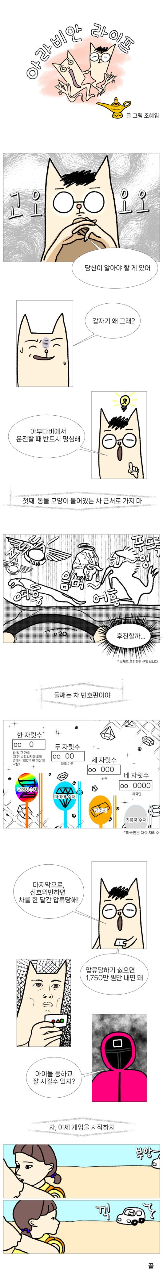 35만원짜리 교통 범칙금 고지서 한 장이 날아왔다. 스쿨버스 정차 시 정지신호 위반이란다. 아부다비 경찰서 애플리케이션을 통해 이 어마어마한 범칙금이 통보된 날, 나는 뒤늦은 후회를 하느라 밤을 꼬박 새웠다. 당시 상황을 기억해내려고 이불 속에서 머리를 쥐어뜯다가 교통경찰국을 찾아가 보았다. 죄(?)를 지어놓고 경찰서를, 그것도 남의 나라 경찰서를 찾아가는 데는 엄청난 용기가 필요했다. 이슬람 왕권 국가들은 지도자의 강력한 통치가 국가 운영의 모토이기에 길에서 우연히 마주쳤던 아부다비 경찰관의 모습은 어딘가 무섭고 엄격한 이미지였다. 그러나 이런 나의 우려가 무색하게도 아부다비의 경찰관들은 친절하고 서비스 정신이 투철했다.
