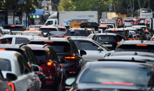 서울 시내 도로에 차량들이 줄을 길게 선 모습[게티이미지] |