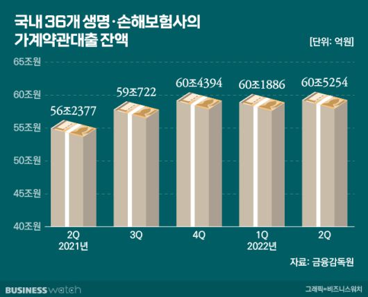 이런 배경 때문에 최근 대출이 늘고 있다. 지난 2분기 국내 36개 생명·손해보험사의 가계 약관대출 잔액은 60조5254억원으로 전 분기 대비 2368억원(0.56%) 늘었다. 은행, 상호금융 등의 신용대출이 고금리 탓에 전반적으로 감소하고 있는 와중에 보험사 대출만 증가하는 모습이다.