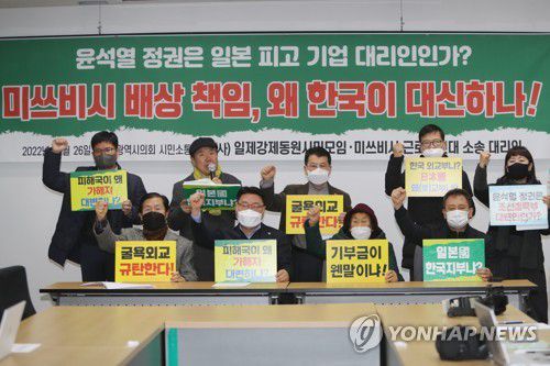 이들은 회견문에서 "지난주 외교부 측으로부터 강제동원 문제에 대한 한국 정부의 유력한 안을 청취했다"며 일제강제동원피해자지원재단(이하 지원재단)이 한국 기업들의 기부로 재원을 마련해 확정판결을 받은 피해자들에게 변제한다는 내용이라고 전했다.