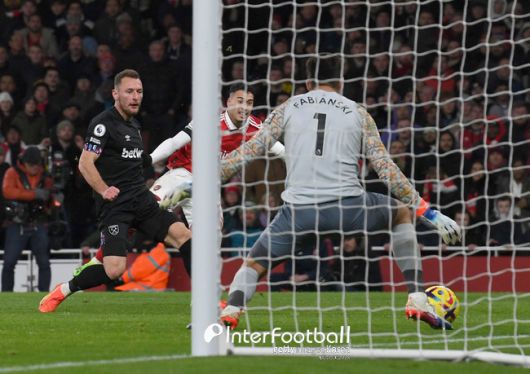 웨스트햄의 추가골 기회가 무산됐다. 후반 1분 스루 패스를 받은 안토니오가 상단을 향해 날카로운 슈팅을 날렸다. 이를 램스데일 골키퍼가 손을 뻗어 쳐냈다. 곧바로 아스널이 반격했다. 후반 3분 파티의 중거리 슈팅을 파비안스키 골키퍼가 막아냈다.