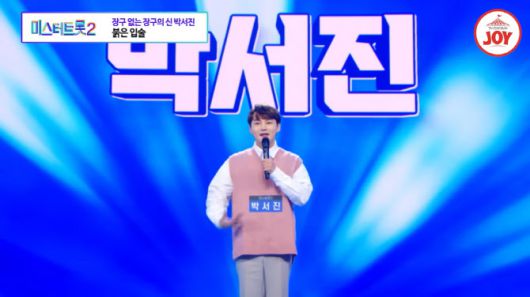 박서진은 ‘장구의 신’이라는 별명으로 불리는 트롯 가수다. 별명 그대로 신들린 장구 연주를 펼쳐 많은 이에게 강한 인상을 남겼다. 박서진은 ‘미스터트롯2’에 첫 등장해 “’장구의 신’으로 활동하다 보니 행사장에서 이름대신 장구 잡이, 장구치는 애로 불리곤 했다”며 “가수 박서진이라는 말을 듣고 싶어 나왔다”고 밝혔다. 이후 박서진은 나훈아의 ‘붉은 입술’을 열창했고, 무대를 본 김연자는 “목소리가 정말 잘 들리는데 중저음, 고음까지 목소리가 좋다”고 극찬을 아끼지 않았다.