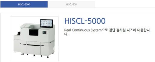 일본 시스멕스의 알츠하이머병 진단 제품(HISCL-5000, HISCL-800) 사진.(자료= 시스멕스 코리아 홈페이지 캡처) |