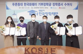 한국화웨이는 국내 정보통신기술(ICT) 인재 양성에 기여하기 위해 한국장학재단에 ‘푸른등대 한국화웨이 기부장학금’을 기탁했다고 28일 밝혔다.