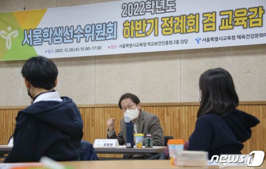 (서울=뉴스1) 민경석 기자 = 조희연 서울시교육감이 28일 오후 서울 종로구 학교보건진흥원에서 열린 2022학년도 서울학생선수위원회 하반기 정례회에 참석해 학생선수들과 대화하고 있다.(서울시교육청 제공) 2022.12.28/뉴스1newsmaker82@news1.krCopyright ⓒ 뉴스1. All rights reserved. 무단 전재 및 재배포 금지.