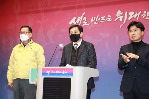 29일 울산시청 프레스센터에서 이창규 울산시의사회장(가운데)과 여태익 울산시 시민건강국장(왼쪽)이 동절기 코로나19 백신 추가 접종을 당부하는 대시민 권고문을 발표하고 있다. [울산시 제공. 재판매 및 DB 금지] |