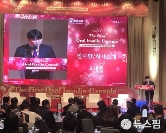 [서울=뉴스핌] 박두호 기자 = 메디콕스는 29일 이스라엘 제약사 오라메드와 서울 강남 조선 팰리스호텔에서 '경구용 인슐린 캡슐 임상 현황' 설명회를 개최했다.