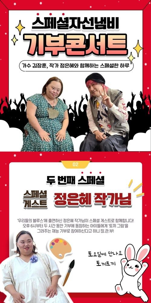 또한 구세군자선냄비 측은 "특별히 '우리들의 블루스'에 출연하셨던 정은혜 작가님도 함께 하셔서 자선냄비에 기부하는 아이들에게 '토끼' 그림을 그려주신다고 하니 더더욱 놓칠 수 없겠죠?!"라고 귀띔했다.