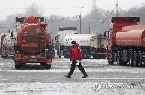 2022년 12월 30일 러시아 모스크바의 가즈프롬 주차장에 유조차들이 서 있다. 연합뉴스 자료 사진 |