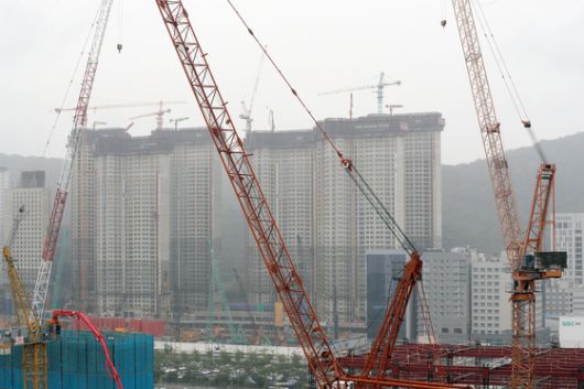 = 27일 오후 경기 광명시 광명역 인근에서 인부들이 아파트 건설 작업을 하고 있다.2018.8.27/뉴스1 |