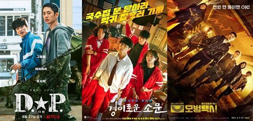 ‘D.P.’-‘경이로운 소문’-‘모범택시’ 포스터. 사진ㅣ넷플릭스, OCN, SBS |